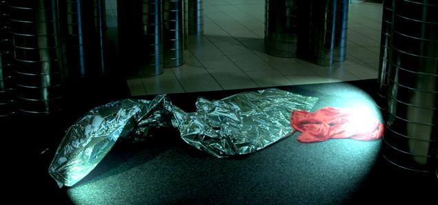 ... dove da un involucro d’acciaio esce una ragazza. Lascia il suo guscio freddo e si ritrova a nudo con la propria anima... si sente protetta dal più grande guscio di acciaio fatto dai tubi che la circondano...