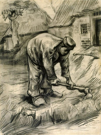 Vincent van Gogh, Contadino con zappa, 1885, gessetto nero su carta velina, cm 43,6 x 32,8.Kröller Müller Museum, Otterlo |