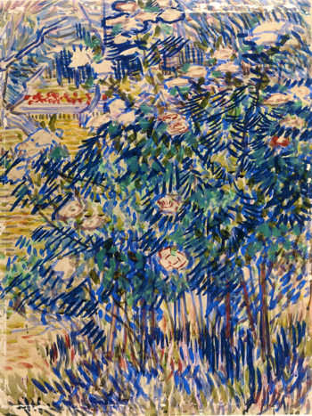 Vincent van Gogh, Roseto in fiore nel giardino dell'ospedale, 1889, olio diluito e inchiostro su carta vergata, cm 61,4 x 46,7. Kröller Müller Museum, Otterlo